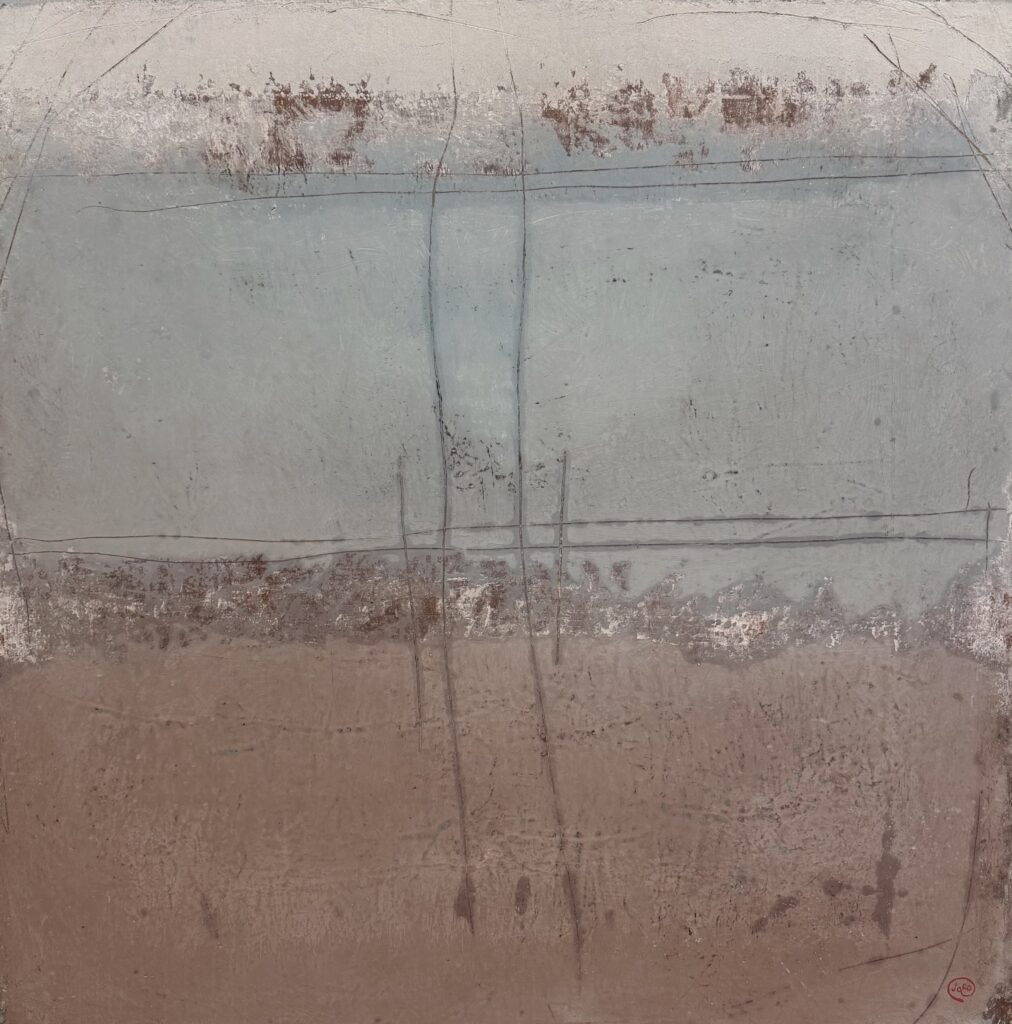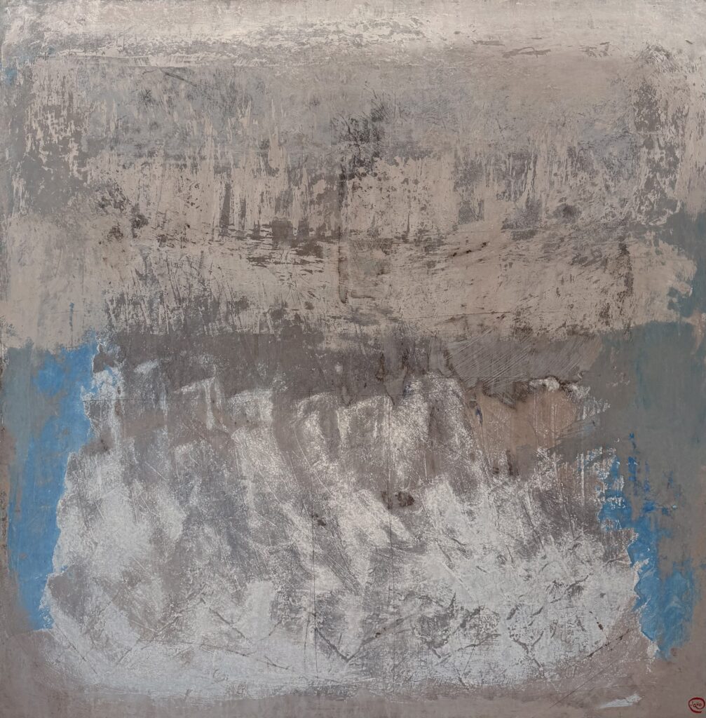 Jaro Palmu (1980). Asun ja työskentelen Helsingissä. Taiteilijana olen ”itseoppinut”. Isäni oli asetelmamaalari Jan Palmu (1945-1995) ja setäni Juhani Palmu (1944-2024) Heiltä olen saanut oppia maalaamisesta ja väreistä. Wabi-Sabi teokseni käsittelevät ajan ja materiaalin muutoksia. Wabi-Sabi on japanilainen estetiikan käsite. Sitä kuvataan usein epätäydellisyydessä, keskeneräisyydessä ja häviävyydessä ilmeneväksi kauneudeksi sekä pyrkimyksenä yksinkertaisuuteen ja vaatimattomuuteen. Nämä on öljyväri ja pigmentti teoksia, maalaan kovalevylle. Kerroksellinen tekniikka tekee niistä erittäin yksityiskohtaisia. Valmiin teoksen päälle vedän viivoja, railoja. Kutsun näitä ”haavoiksi”.